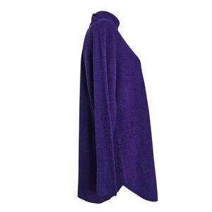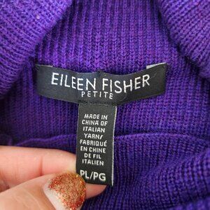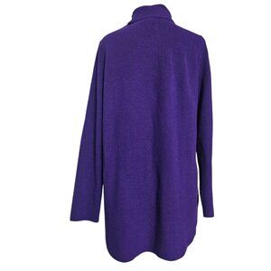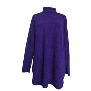Eileen Fisher 100% Merino Wool Women's Turtleneck Top SIze Large Petite LP. Color is Purple. Pullover Tunic Sweater. Made of Italian Yarn.