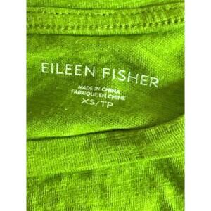 Eileen Fisher 100% Organic Cotton Green Crew Neck Top Asymmetrical Hem Size XS