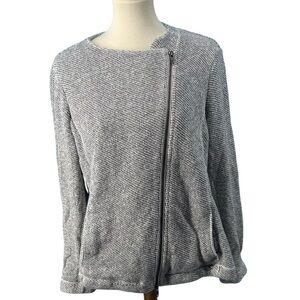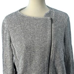 Eileen Fisher 100% Organic Cotton Twist Terry Zip-Front Moto Jacket Ash Size XL