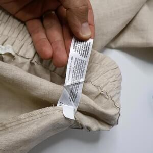 Eileen Fisher 100% Organic Linen Beige Pull On Pants XL Lagenlook High Rise Crop cropped tapered neutral coastal beachy beach minimalist quiet luxury breathable luxurious tan natural oatmeal