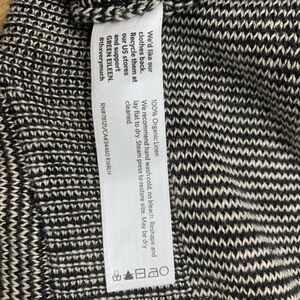 Eileen Fisher 100% Organic Linen Black Cream Striped Round Neck Contrast Trim MP