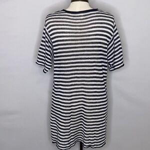 Eileen Fisher 100% Organic Linen Loose Knit Tunic Top/Cover Up - Size XS. Good pre-owned condition. There were some pulled threads but I pulled them to the back side and secured what I could. The brand tag is pulled loose on one side. Crew neckline. Dropped shoulders. Relaxed fit. Pullover style. Oversized. Side slit hem. Organic Linen. Sheer. Approximate measurements: 19 1/2" bust, 32" length.