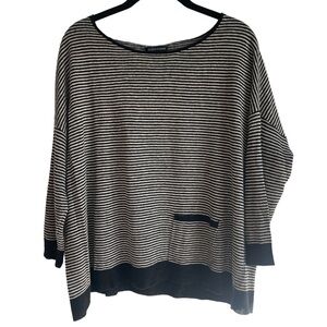 Eileen Fisher 100% Organic Linen Striped 3/4 Sleeve Top, Size S