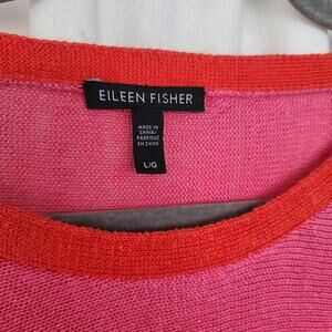 Eileen Fisher 100% Organic Linen Sweater Pullover Women's Size L pink Orang Knit