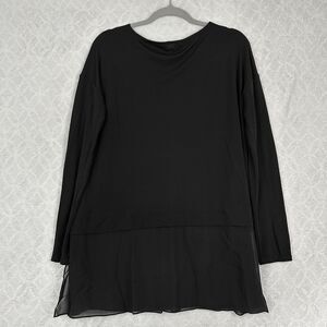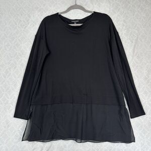 Eileen Fisher 100% Silk Bateau Neck Tunic Small Black Chiffon Layer Top Luxury