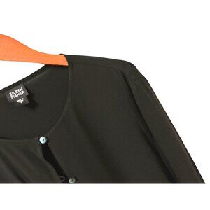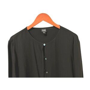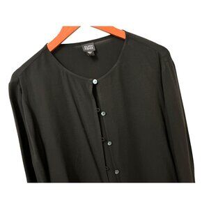 Eileen Fisher 100% Silk Black Button-Up Cardigan Blouse Long Sleeve Size Large