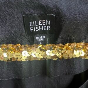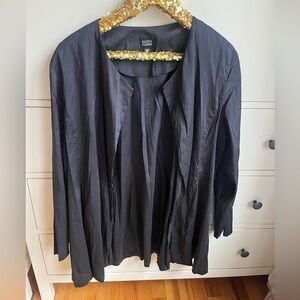 Eileen Fisher 100% Silk Black Open-Front Long Drapey Cardigan with Pockets