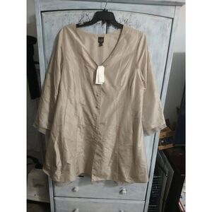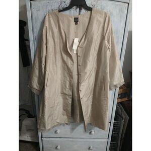 Eileen Fisher 100% Silk Button Up Fitted Taffeta Jacket 1x Nwt Boho Classic
