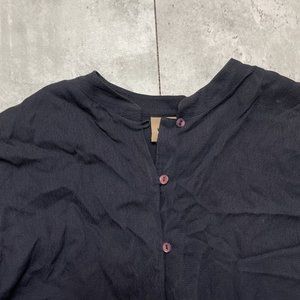 Eileen Fisher 100% Silk Button Up Tunic Blouse Size Medium Black Shirt