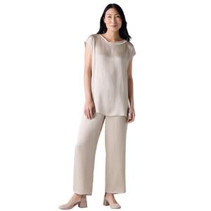 Eileen Fisher 100% Silk Elastic Waist Pull-On Wide Leg Cropped Pants, Medium
