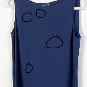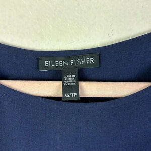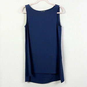 Eileen Fisher 100% Silk Georgette Crepe Ballet Neck Long Tank Tunic navy blue XS