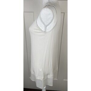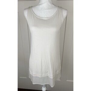Eileen Fisher 100% Silk Georgette Crepe Bateau Neck Tank XXS Bone Ecru Sheer Hem