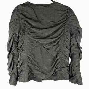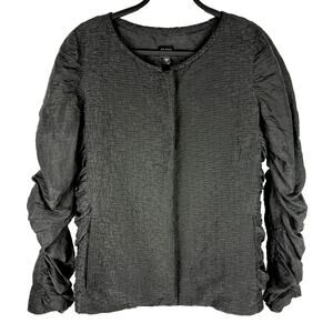 Eileen Fisher 100% Silk Jacket Sz Small Black Open Ruched Lightweight Capsule