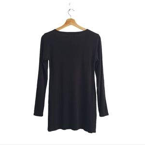 Eileen Fisher 100% Silk Long Sleeve Solid Black Scoop Neck Tunic Top Quiet Luxury Base Layer