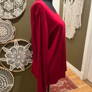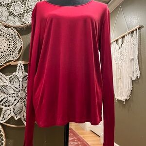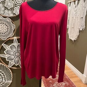 Luxurious and timeless 100% silk top by Eileen Fisher in a rich, deep red hue. This elegant long-sleeve piece drapes beautifully with a fluid, lightweight feel and a classic round neckline. Perfect for pairing with trousers, skirts, or layering under blazers for an elevated minimalist look.