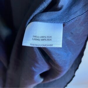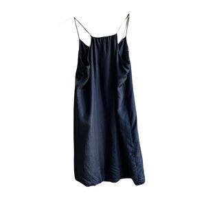 100% Silk. Spaghetti strappy sleeveless tank knee length dress. Chic dark blue dress adorned with shimmering sequins & beaded accents. Ideal for special occasions.