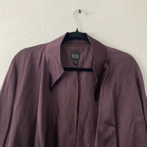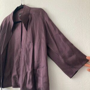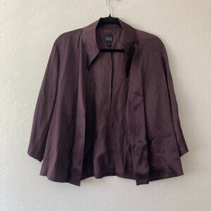 Eileen Fisher 100% Silk Purple Open Front Jacket Minimalist Quiet Luxury Small