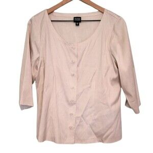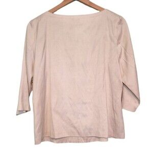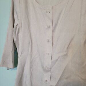 Eileen Fisher 100% Silk Beige/Taupe Neutral 3/4 Length Lightweight Jacket Size Petite Large