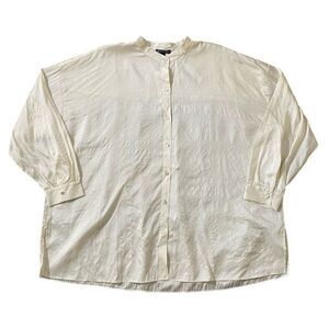 Eileen Fisher 100% Silk Cream Mandarin Collar Button Up Top NWT Size Extra Large