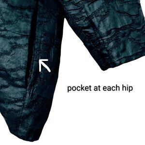 Make an impression in this Eileen Fisher 100% Tussah silk blazer jacket - a refined, elegant piece that stands out for its luxurious texture and rich color. The fabric has a beautiful matte silk sheen that shifts between dark teal and forest green depending on the light, creating a subtle yet eye catching effect.