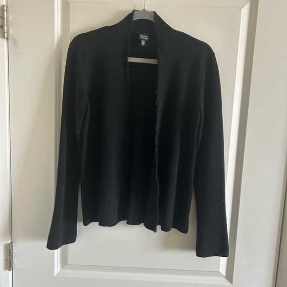 Eileen Fisher 100% Wool Black Knit Cardigan Sweater