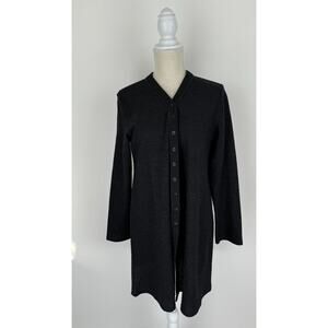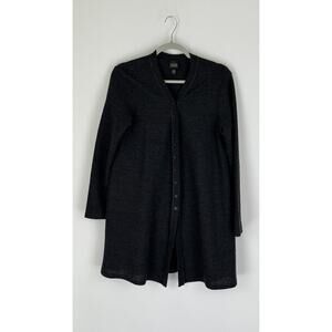 Eileen Fisher 100% Wool Button Up Cardigan Sweater Long Sleeve Women Medium Grey