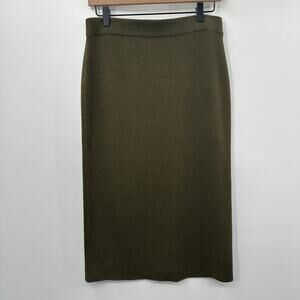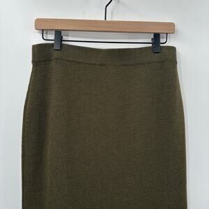 Eileen Fisher 100% Wool Stretch Knit Midi Skirt in Olive Green Size Petite S