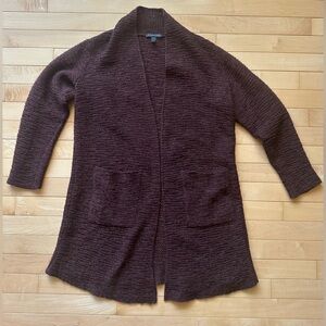 elegant brown/rust/deep burgundy (varies with light) cardigan by Eileen Fisher.