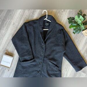 Eileen Fisher 100% boiled wool button front winter coat in charcoal. Size S