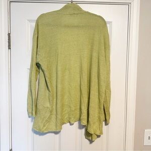 Eileen Fisher 100% organic linen light weight cardigan. Great shape, beautiful light green color way perfect for summer! Pockets on the sides, lightweight and airy. 100% organic linen, no size tag but fits like an XL -2XL but see measurements for fit! Perfect to use as a cover up, toss on over shorts and a tank!