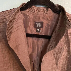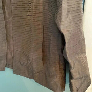 Eileen Fisher 100% silk brown/gray long sleeve collar jacket