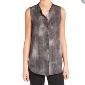Eileen Fisher 100% silk button down sleeveless gray blouse women’s size XS