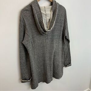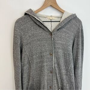 Eileen Fisher 100% Cotton Button Front Contrast Seam Hooded Sweater Size Medium