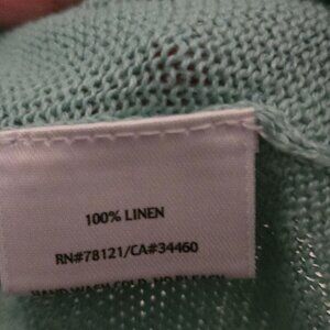Eileen Fisher 100%Linen Mint Green Open Front Cardigan Sweater Size L