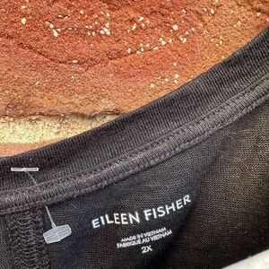 Eileen Fisher $118 Organic Linen Jersey V-Neck Boxy Tee black 2X NEW