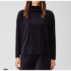 Eileen Fisher $148 Velour Funnel Neck Boxy Top XXS
