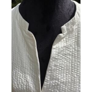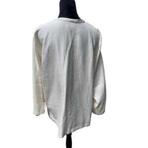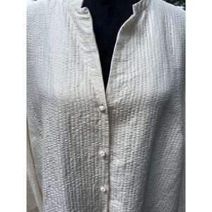 Eileen Fisher 1X Textured Silk Blend Button Up Shirt Plus Size Cream