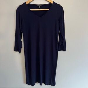 Eileen Fisher 3/4 Sleeve Mini Dress Minimalist Normcore Petite Sz S Navy Blue