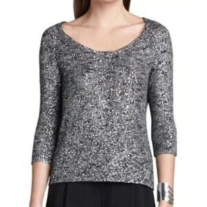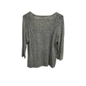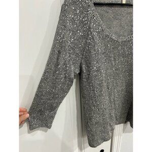 Eileen Fisher 3/4 Sleeve Pullover Sweater Gray Sz Medium Metallic Linen Blend