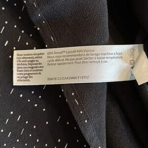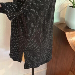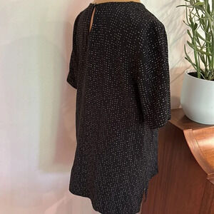 Eileen Fisher 6 black short sleeve blouse white dash dot print great condition.