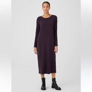 NWT Eileen Fisher stretched jersey brown mock neck midi light weight long sleeve dress size PS