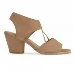 Eileen Fisher 8 Doe Nubuck Suede Block Heel Sandals EUC