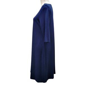 This Eileen Fisher Petite Blue Scoop Neck A-Line Dress has No Obvious Rips, Stains or Defects Noted - Good Pre-Owned Condition!