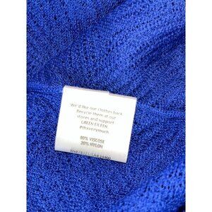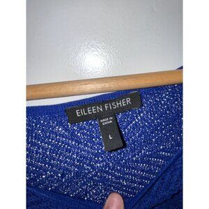 Eileen Fisher Adriatic Blue Rayon Nylon Crinkle Diamond Tunic Sweater Women's L
