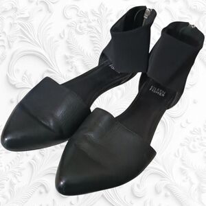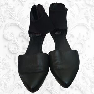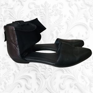 Eileen Fisher Allot Tumbled Ballet Flats Black Leather Mesh Ankle Strap 6.5