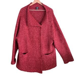 Eileen Fisher Alpaca Cardigan 3X Red Sweater Wrap Nubby Knit Cozy Lounge Luxe