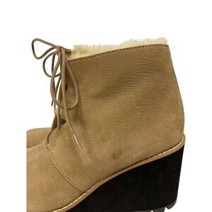 Eileen Fisher Alphine Women's Boot Bootie Shearling Wedge Sand Tan Size 9.5