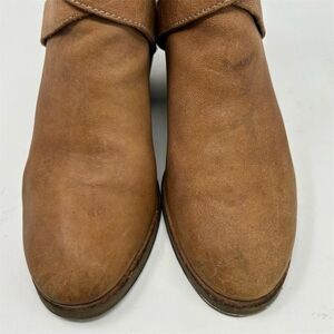 Eileen Fisher Ankle Booties Camel Tan Brown Leather Size 8 Strappy Back Zipper