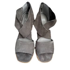 Eileen Fisher Ann Tumbled Nubuck Sandals Brown Heel Strappy 9 Ankle Zipper $245