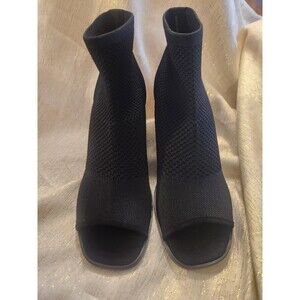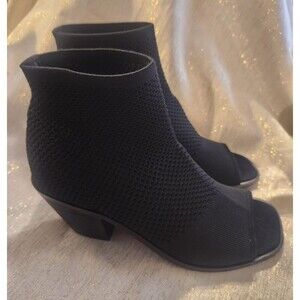 Eileen Fisher Ark Sock Stretch Booties Boots Open Toe Black Women's Size 6.5